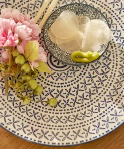 - Farbe / Dekor: blau gemustert