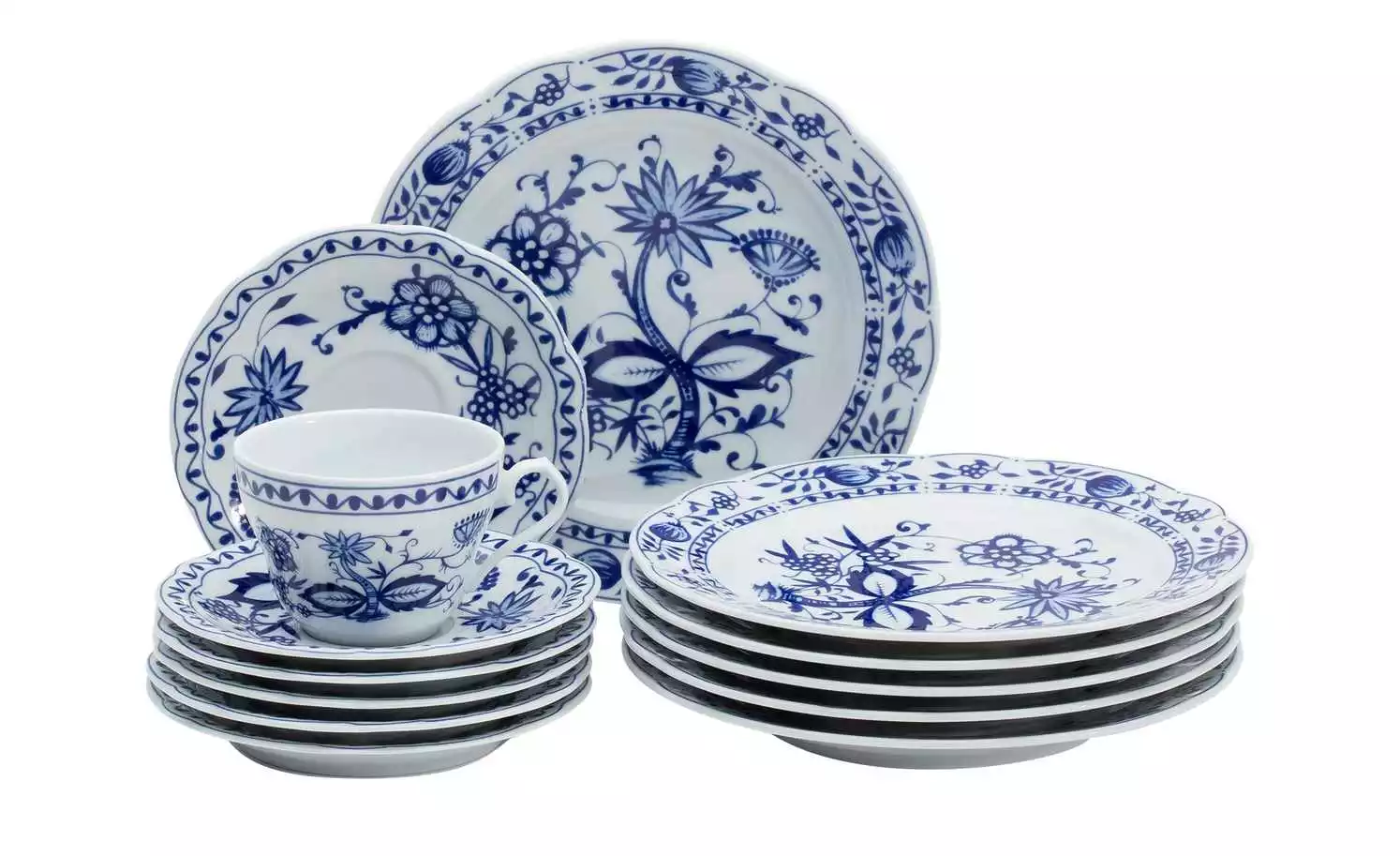 Bei diesem 18-teiligen Kaffeeservice handelt es sich um einen echten Klassiker. Das beliebte Zwiebelmuster-Dekor ist bei Jung und Alt gleichermaßen beliebt und verströmt auf Ihrer Kaffeetafel eine wohnliche Atmosphäre. Rustikal ist auch die Qualität, denn die Teller und Tassen sind zudem ofenfest, mikrowellenfest und spülmaschinenfest.