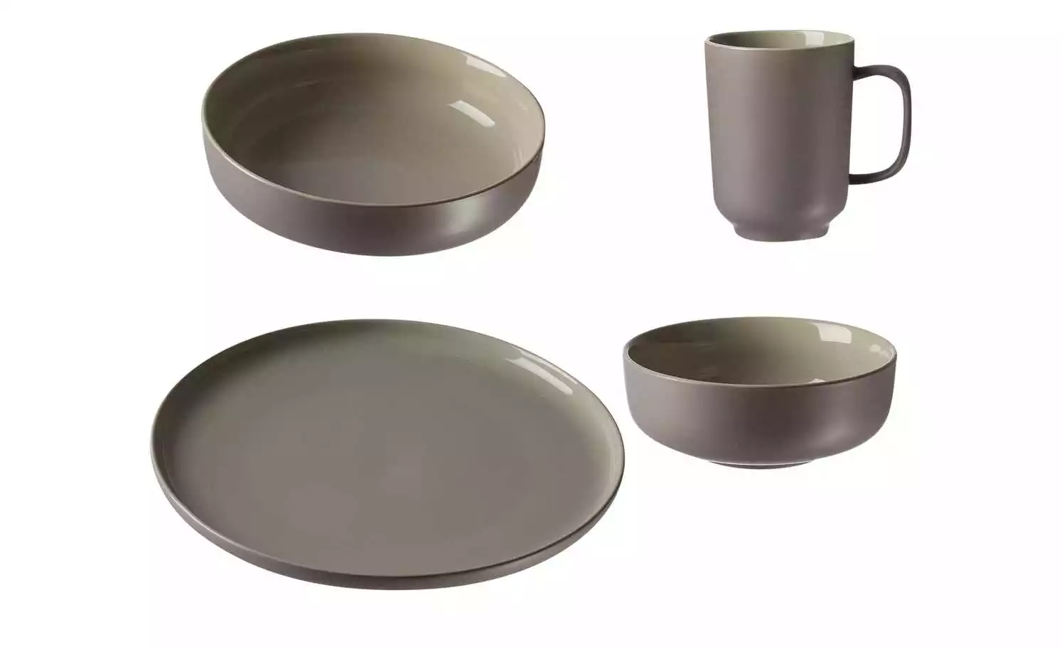 - Lieferumfang / mitgeliefertes Zubehör: 4 Kaffeebecher (320 ml), 4 Müslischalen (14 cm Ø, 5 cm hoch), 4 Schalen (21 cm Ø, 5 cm hoch), 4 Teller Flach (26 cm Ø)